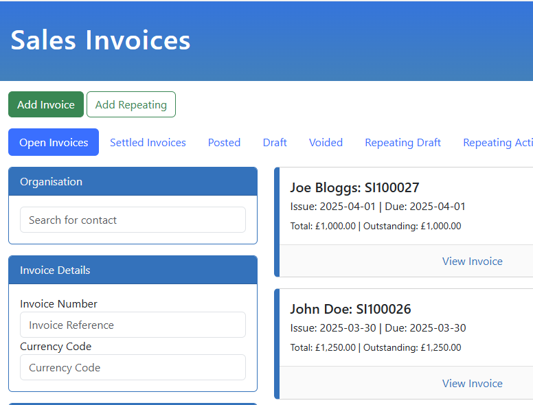 Our Sales Invoice module allows you to setup your invoice once, and like magic, it repeats every time you need it. When your payment comes in, just assign it to the invoice, and we’ll settle it – just like that.